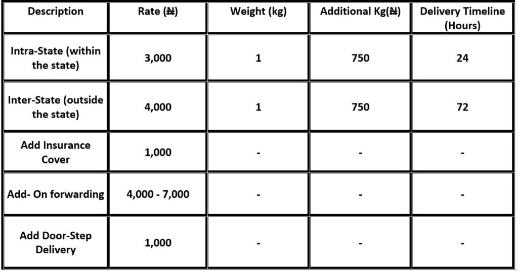 3. Clients are at liberty to add or reject insurance coverage for their package, upon addiding a ₦1,000 insurance coverages fees will apply